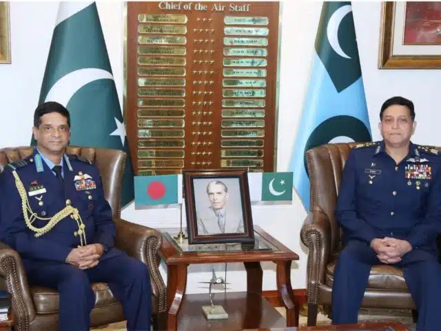 The Bangladeshi Air Chief praised PAF’s combat record and sought assistance in maintenance support for Bangladesh Air Force’s aging fleet and integration of air defence radar systems to enhance air surveillance.